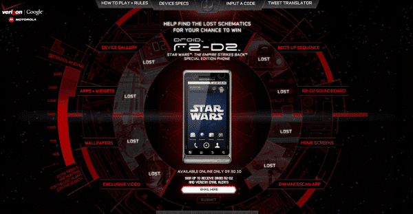 The @DroidLanding Twitter account just started up what appears to be a new contest. At the same time, the new R2-D2 Droid 2 page went live and includes all kinds of fun facts, tricks, secrets, and info about this mysterious Star Wars related device.