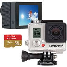 - GoPro Hero3+ Silver Edition Camera: high-definition video recording; wide-angle glass lens; enhanced low-light performance; 10.0MP still image resolution; mono microphone; microSD memory card support